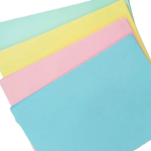 A embalagem vem com 100 folhas divididas em 4 cores, sendo 25 fls de cada cor: Amarelo, azul, rosa e verde